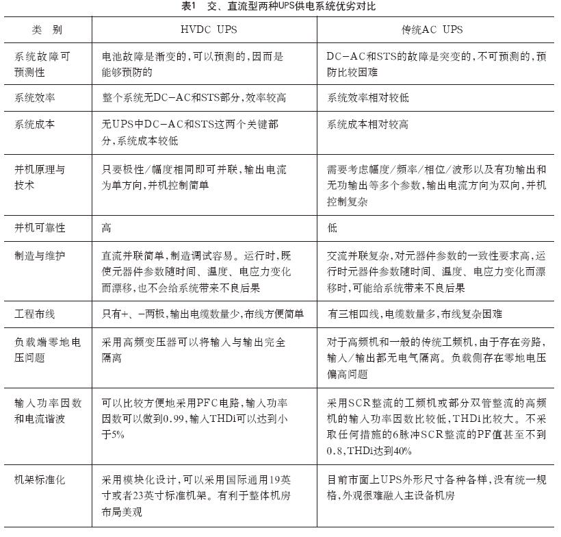 交、直流兩種供電系統(tǒng)優(yōu)劣對比見表1。