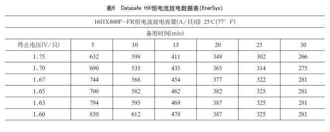 提示:采用恒電流法確定的EnerSys蓄電池與前述采用恒功率法確定的EnerSys蓄電池是相同的(16HX800F-FR)。