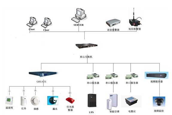 系統(tǒng)中對于各個被監(jiān)控機(jī)房的供電子系統(tǒng)、環(huán)境子系統(tǒng)、消防子系統(tǒng)、監(jiān)視子系統(tǒng)等集中網(wǎng)管和監(jiān)控綜合系統(tǒng)功能。