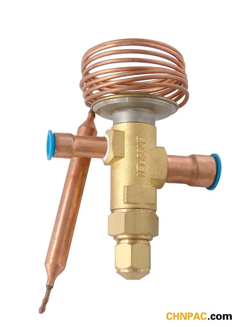 3、脹大閥的品種:(內(nèi)平衡、外平衡) 效果于熱力脹大閥體內(nèi)傳動膜片下部的壓力為節(jié)省后的蒸騰壓力(這一壓力經(jīng)過傳動桿和傳動片的縫隙而進(jìn)入膜片下部分空間)這種結(jié)構(gòu)稱為內(nèi)平衡式脹大閥。 效果于熱力脹大閥體內(nèi)傳動膜片下部的壓力不是節(jié)省后的蒸騰壓力,而是經(jīng)過外接平衡管將蒸騰器出口端的壓力引進(jìn)傳動膜片下部空間結(jié)構(gòu)的閥門、稱為外平衡式熱力脹大閥。 與內(nèi)平衡式脹大閥比較,外平衡式熱力脹大閥的過熱度要小得多,所以選用外平衡式熱力脹大閥時,能充分發(fā)揮蒸騰器的傳熱面積的效果和進(jìn)步制冷設(shè)備的效果,在蒸騰器阻力較小、壓力丟失不大的情況下,可選用內(nèi)平衡式熱力脹大閥;當(dāng)蒸騰阻力較大,壓力丟失比較大或具有液體分配器時,應(yīng)選用外平衡式熱力脹大閥。選用分配器的,一般都選用外平衡脹大閥。 在專用空調(diào)機(jī)中選用的通常是外平衡式熱力脹大閥。熱力脹大閥雖僅僅一個很小的部件,但它在制冷體系中的效果必不可少,所以它與制冷緊縮機(jī)、蒸騰器、冷凝器、并稱為制冷體系四大部件。